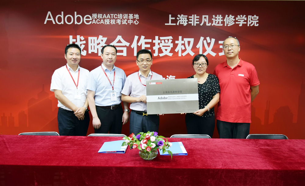 2018年9月18日,Adobe中国授权培训中心及国际认证ACA授权考试中心授权仪式在非凡学院徐汇校区隆重举行,上海非凡进修学院正式成为Adobe中国授权培训基地及考试中心。Adobe中国授权培训中心市场总监邱俊琳女士;Adobe中国授权培训中心华东区负责人王伟民先生;非凡学院院长董恩海先生、副院长余成龙先生、副院长吕开科先生出席了本次授权仪式。