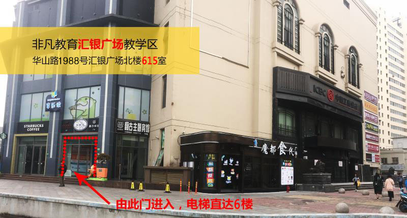 2、到华山路1988号汇银广场北楼从魔都时代后面的图中所示位置乘电梯到6楼615室。