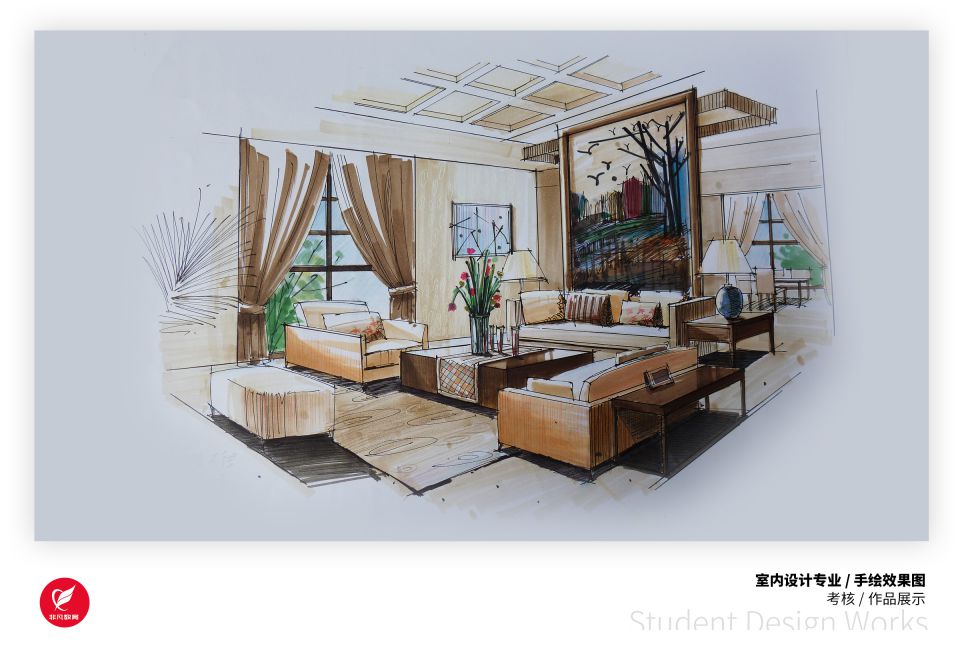 老师一起来欣赏室内设计手绘效果图学员作品。