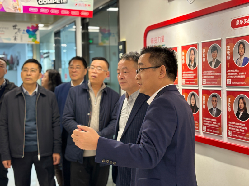 上午,芮国强书记一行首先深入非凡教育实训场地与教学区域,实地考察办学情况。在董院长的讲解下,芮书记先后参观了拍摄实训室、直播实训室、服装设计实训中心、短视频创作实训室等特色教学场所,详细了解学校在职业技能培养、课程体系建设与产教融合实践等方面的探索与成果。芮书记对非凡教育立足市场、注重实践的办学模式表示肯定,并鼓励学院继续发挥校友企业的示范作用,在职业教育领域持续深耕。