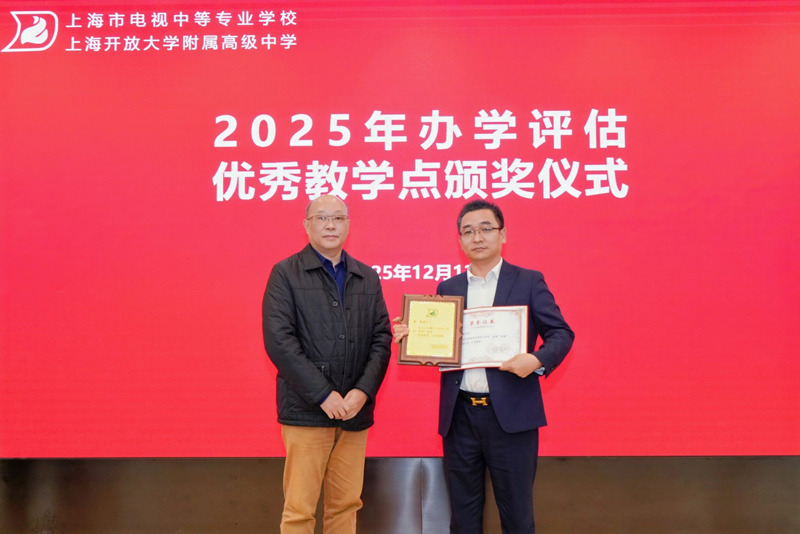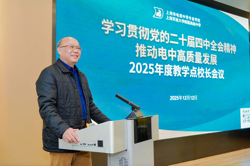 2025年12月12日下午,上海市电视中等专业学校、上海开放大学附属高级中学2025年度教学点校长会议在上海开放大学培训中心隆重召开。会议以“学习贯彻党的二十届四中全会精神,推动电中高质量发展”为主题,汇聚了学校领导、各教学点负责人及相关代表共70余人,共同总结过去、谋划未来。会议上,非凡教学点凭借其卓越的办学成效和鲜明的办学特色,被授予2025年度办学评估“优秀教学点”称号,非凡教学点董恩海出席会议并分享优秀办学经验。