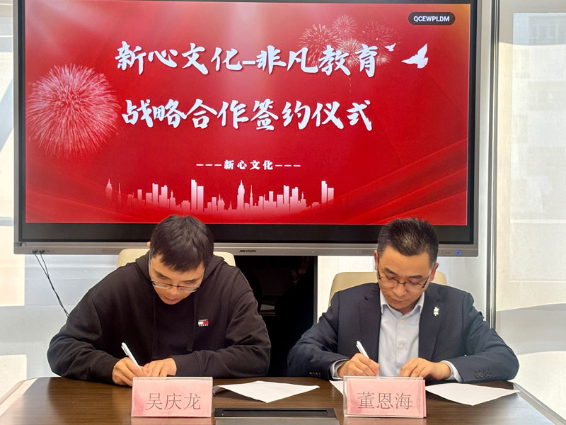 在全体与会者的共同见证下,董恩海院长与吴庆龙董事长分别代表非凡教育与新心文化传媒,正式签署了战略合作协议,标志着双方在人才培养、实习就业、课程共建等方面开启了全面合作的新篇章。