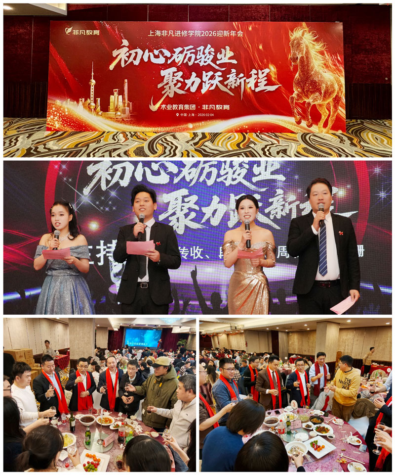 "初心砺骏业,聚力跃新程——术业教育集团丨上海非凡进修学院2026迎新年会"在温馨与欢乐中圆满落幕。初心如磐,方能行稳致远;聚力同行,必将跃上新程。新的一年,非凡教育将继续秉持教育初心,凝聚团队力量,以更加昂扬的姿态迎接挑战,共创更加辉煌的明天!
