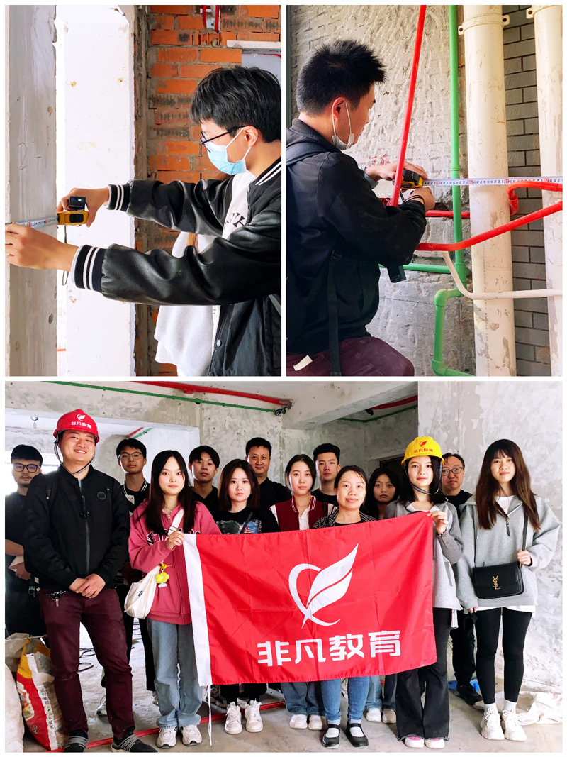 走出教室,课堂还在继续。在老师的带领下,学员们会走进真实工地进行实地量房,把课堂上学到的理论知识,转化为现场的真实感知。量房回来,再做方案,思路就不一样了——因为他们画的不再是“想象中的空间”,而是“真实存在的地方”。